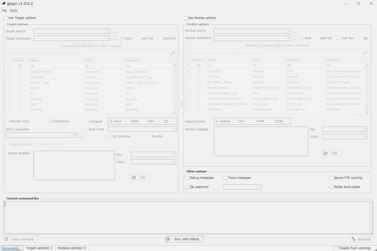 Kape 다운로드 후 gkape.exe 실행 (gui 용 kape)